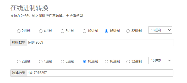 我们提取这个文件名的前八位548495d9从16进制转化为10进制,得到的结果是1417975257