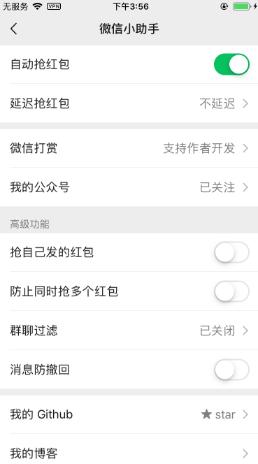 - 可设置过滤特定的群聊防止落入公司群或者点餐群抢红包的尴尬境地。