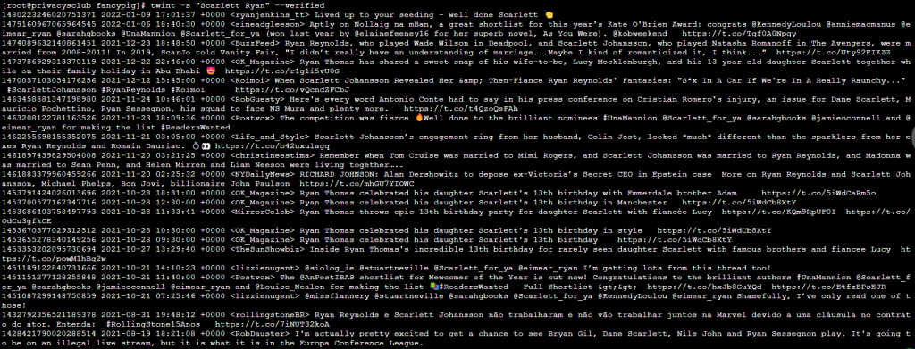 twint -s "Scarlett Johansson" --verified