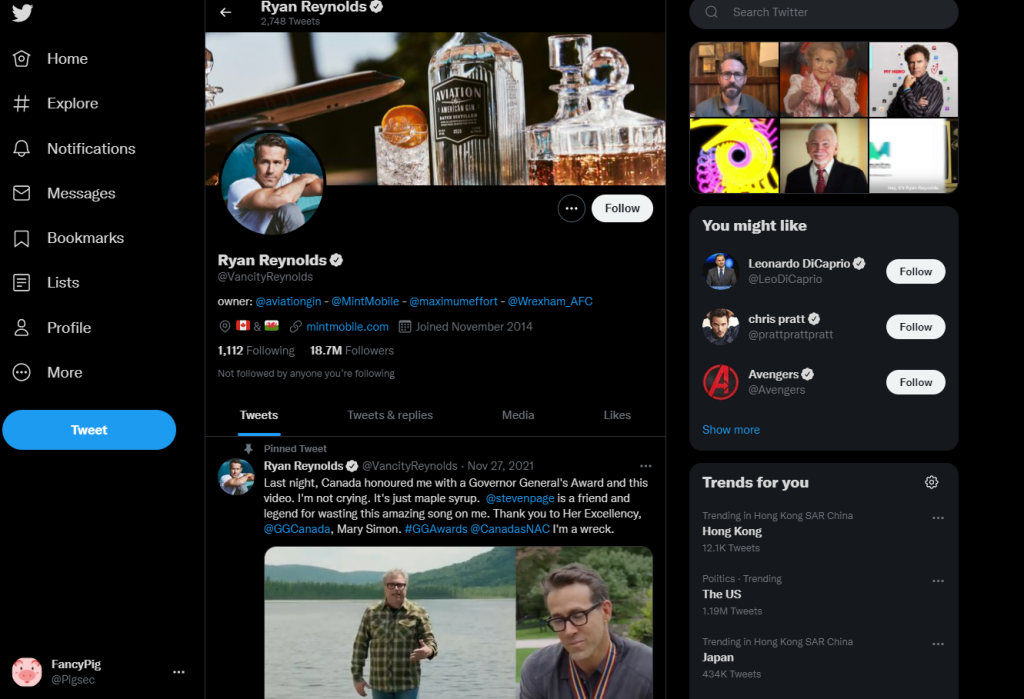 我们这里没有检测到,我们这里换到了寡姐的前夫小贱贱(https://twitter.com/VancityReynolds),我们尝试一下