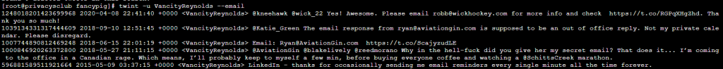 twint -u VancityReynolds --email