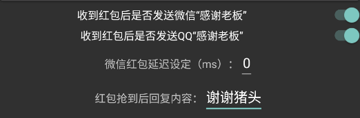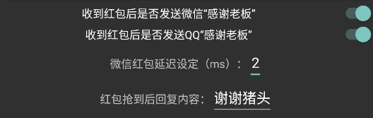 当然,还支持了领到红包后,可以自动回复的设置,例如可以自定义感谢的话:谢谢猪头