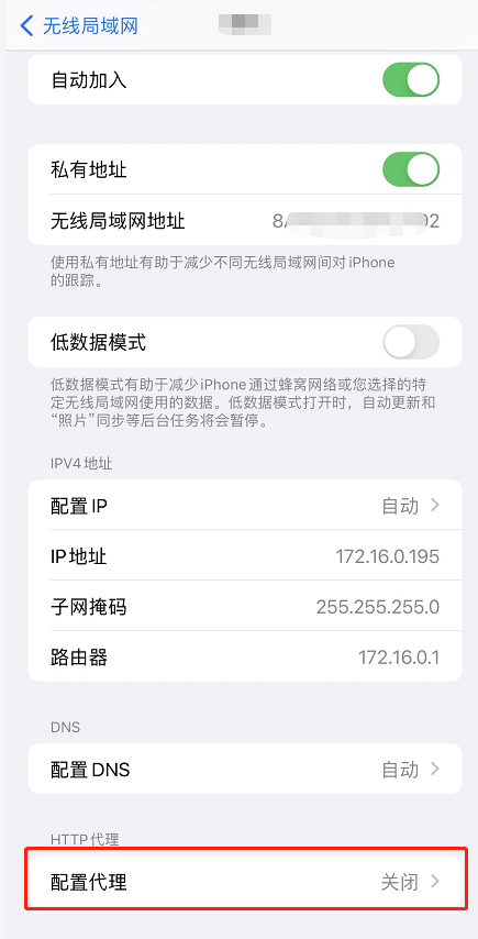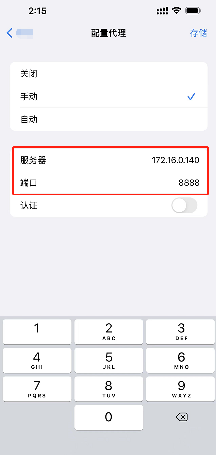 我们按照上面的提示在手机上设置好代理,选择对应的Wifi,点配置代理>手动代理,我这里以苹果手机为例