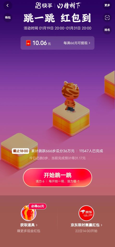 快手APP跳一跳 白嫖66元红包教程