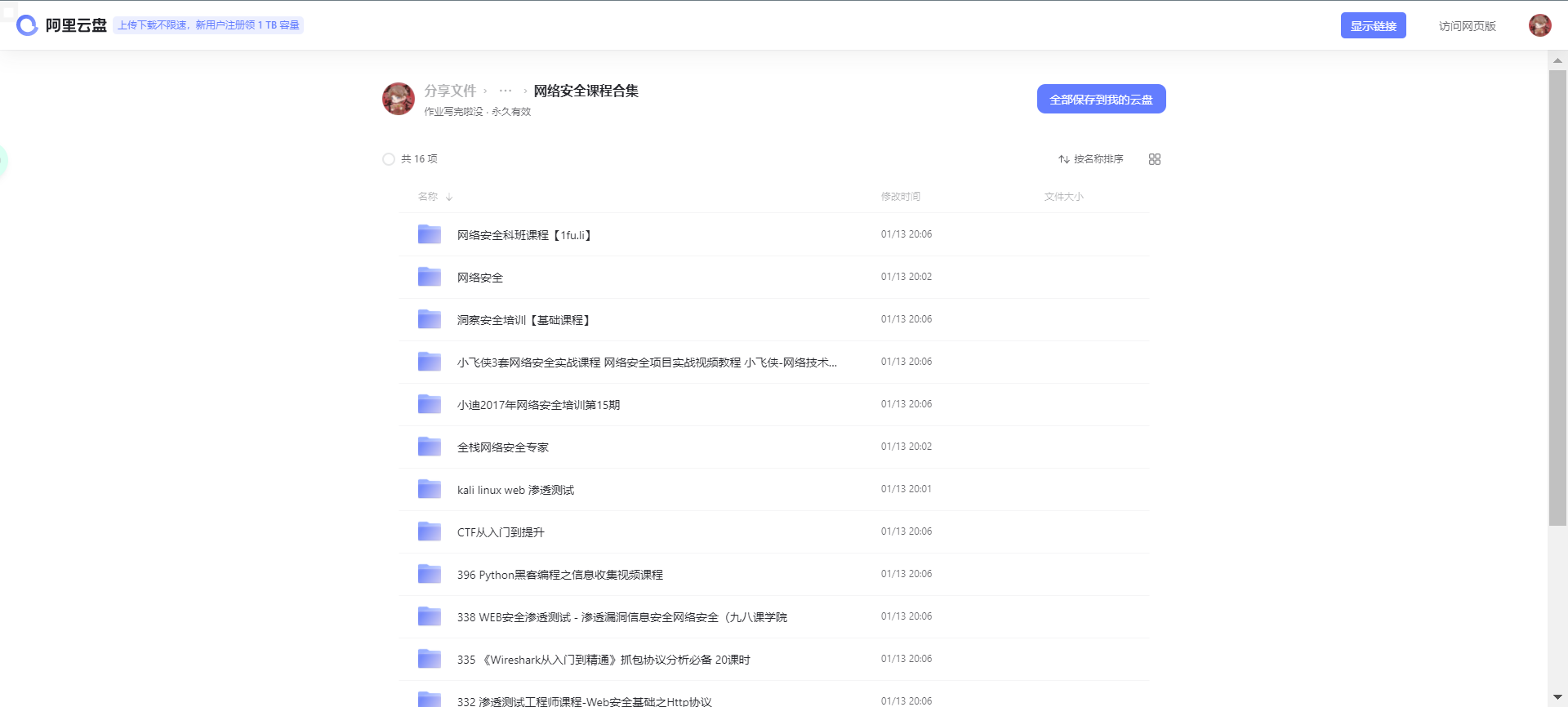 之后打开分享链接,点开文件夹,看到下面就说明成功了: