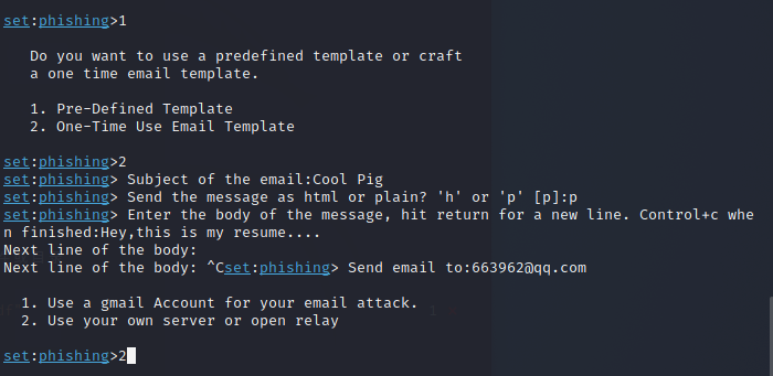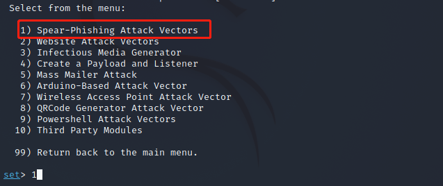 输入1,选择Social-Engineering Attacks(社会工程学攻击)
