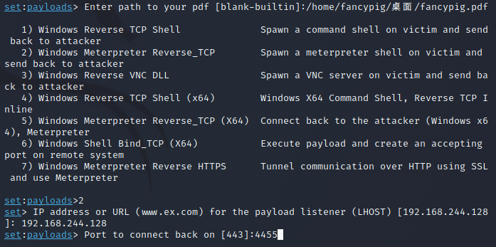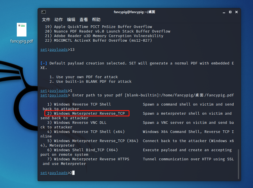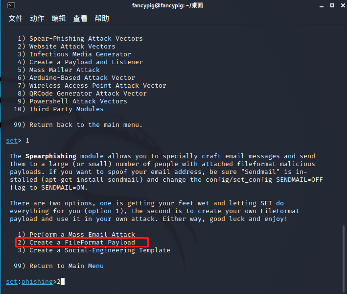 输入2,Create a FileFormat Payload(创建一个文件格式的payload)