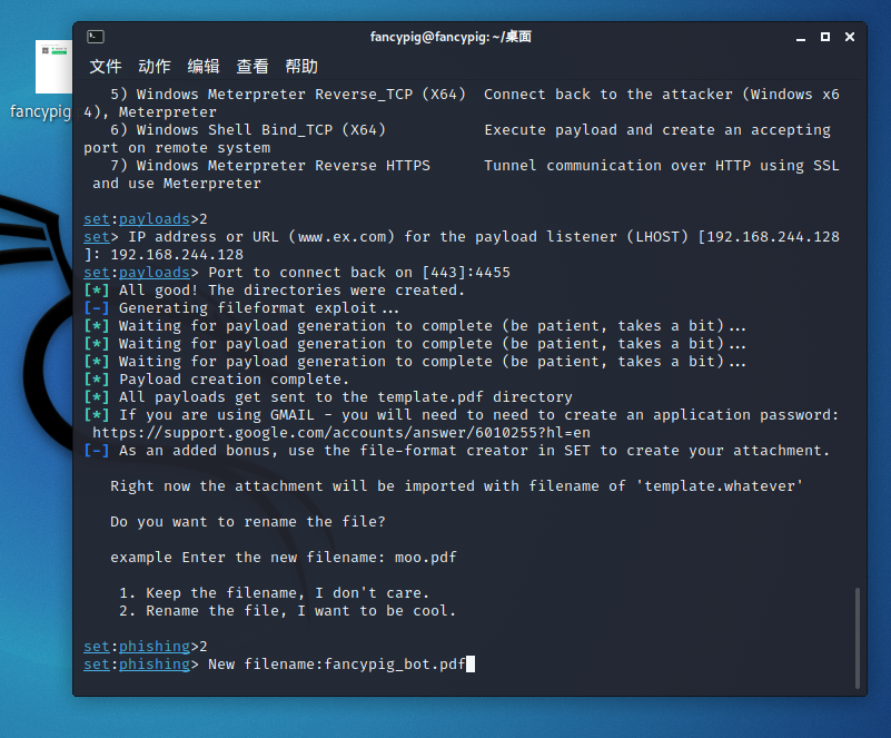 放到了桌面/home/fancypig/桌面/fancypig.pdf 的位置