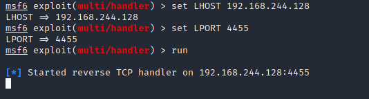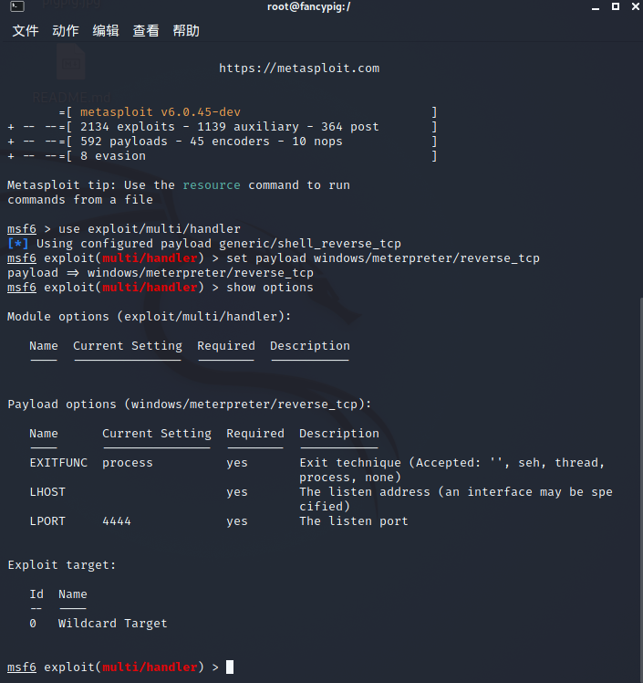 以及端口,我们刚才生成的恶意样本是4455端口,这里也要监听4455端口