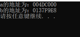第二次打印,a的地址没变,b的地址变为005EFBF4