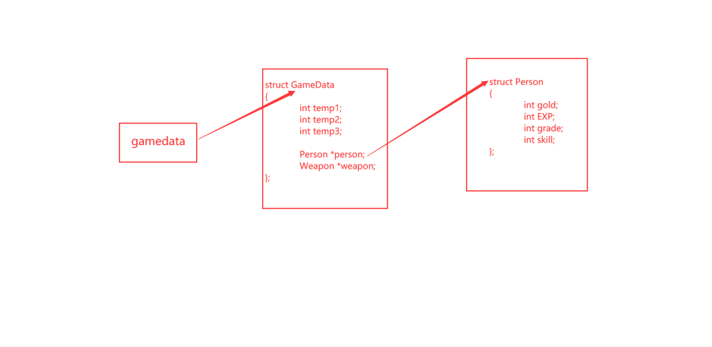 但是,gamedata是一个全局变量,gamedata指针指向 GameData 类,而GameData类中又定义了Person、Weapon类指针