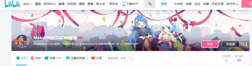 打开发现居然是一位B站的UP主的首页