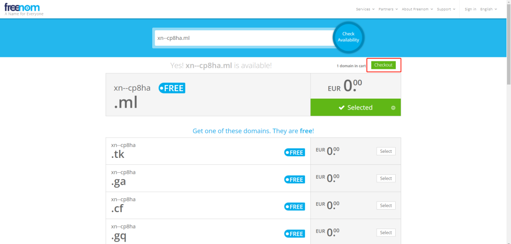 这些都还没有被注册,而且我们看第三个.ML结尾的域名可以免费就能注册!