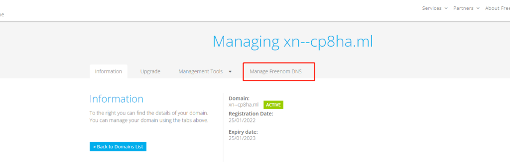 然后点击Manage Freenom DNS