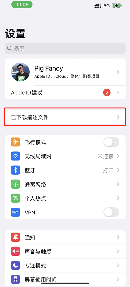 - 设置>已下载描述文件