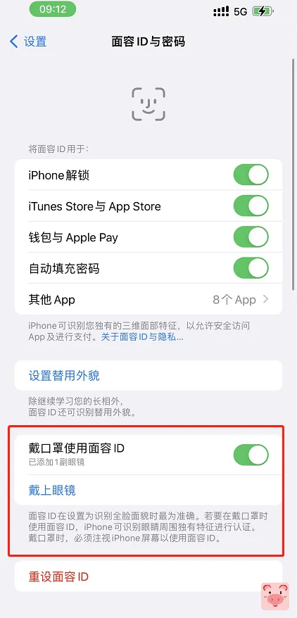 然后在外面的时候就可以戴着口罩解锁屏幕了,这就很舒服!