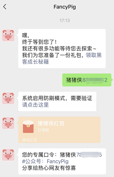 如果FancyPig微信公众号没有响应,有可能是参与的猪猪粉们太多了,活动会一直进行,直到红包发放完毕