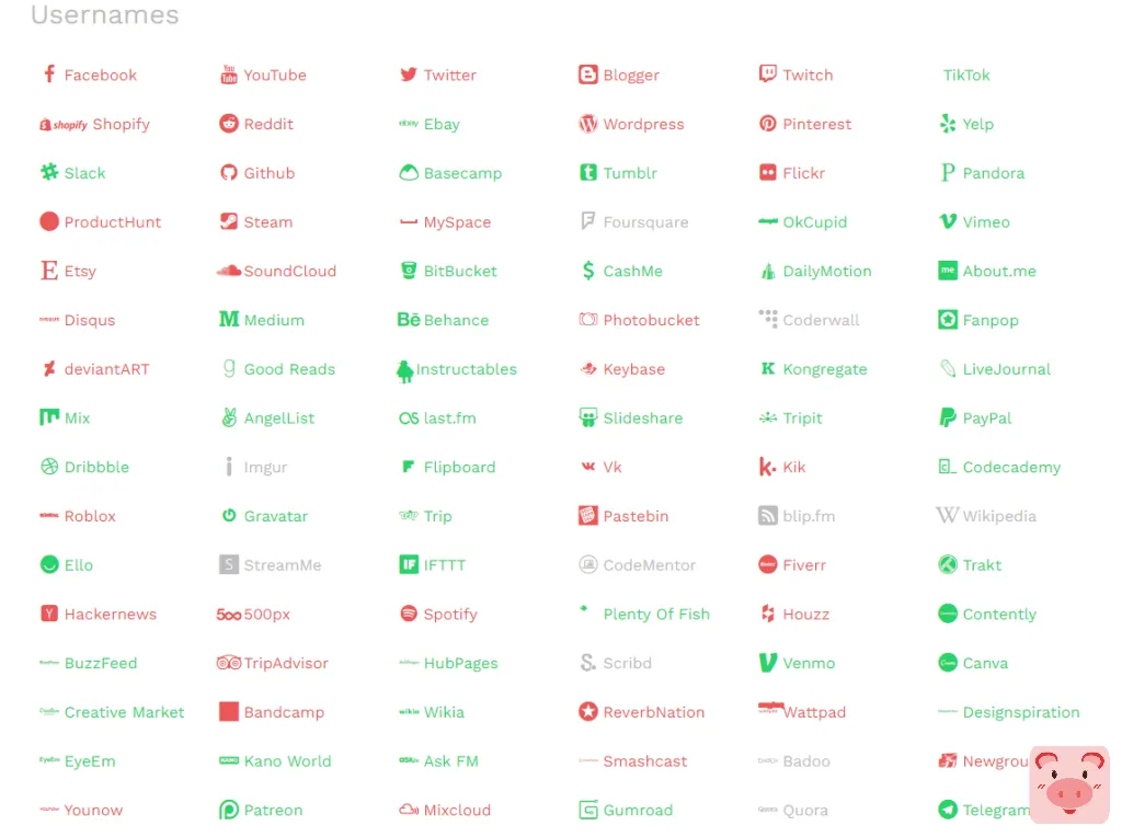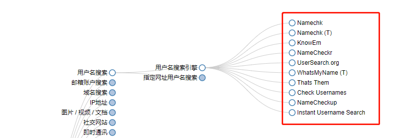 我们举个例子,我们想找一下fancypig这个用户名注册过哪些社交网站,我们可以看这里,这里提供了很多相关工具