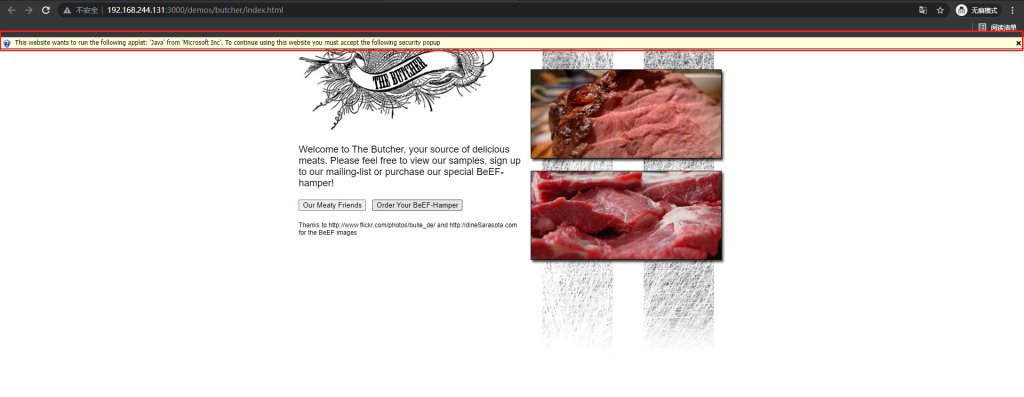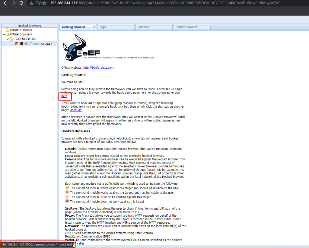 我们通过192.168.244.131:3000/ui/panel便可以进入后台,将下图这个页面中画圈的链接http://192.168.244.131:3000/demos/butcher/index.html发送给热心网友
