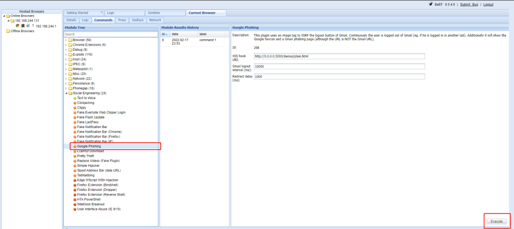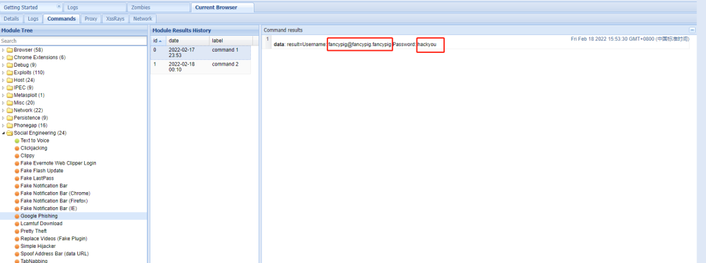 当然,BeEF不止于此,还可以通过XSS嵌入到页面中,让你正常的页面打开也可以受到监控,这个你可以自己研究下咯!