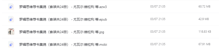 罗辑思维推荐书籍 套装电子书24册,azw3、wpub和mobi三种电子书格式。