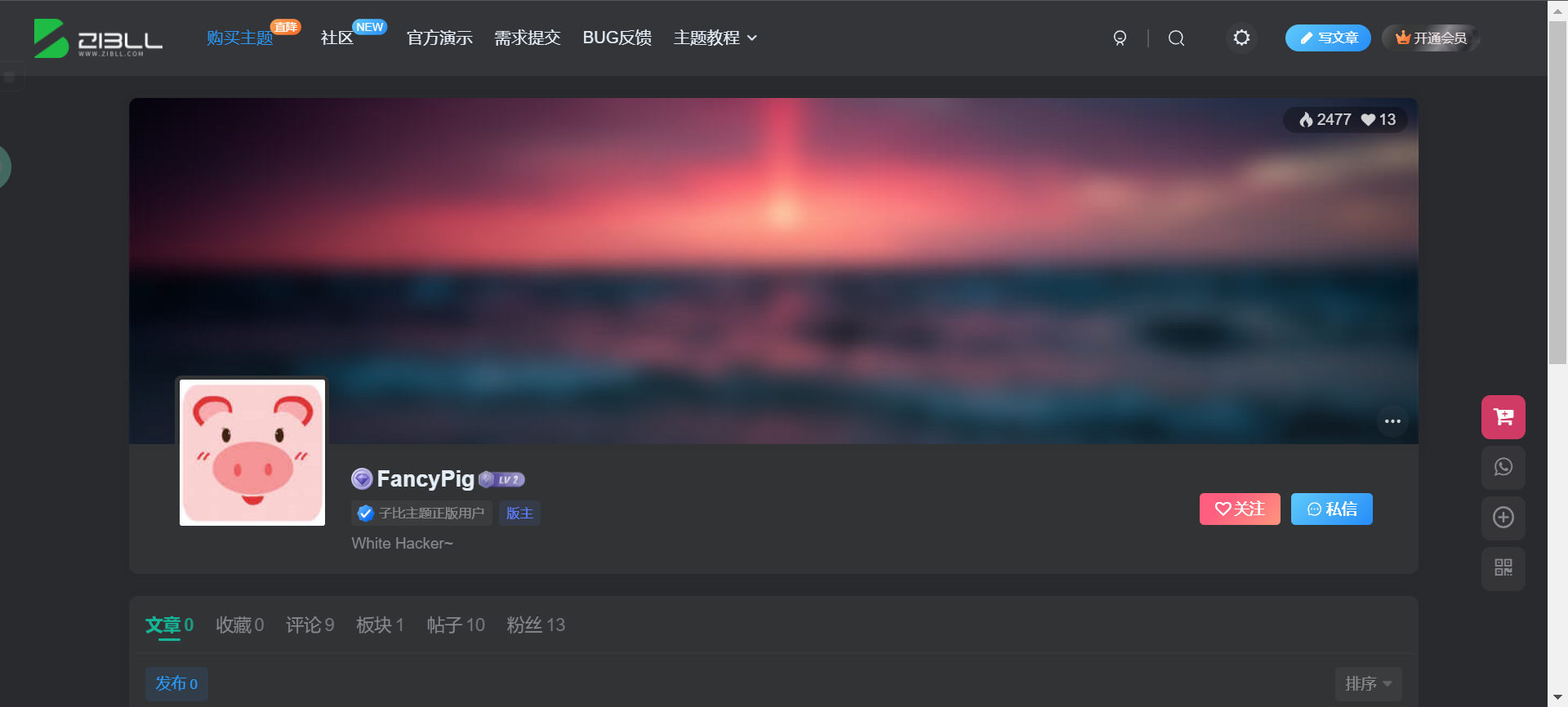 大家都应该知道网站的主题是子比了吧,不知道的去官网看信息:https://www.zibll.com/