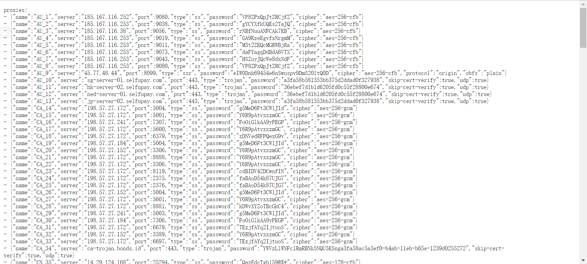 参数设置为:?c=HK,TW,KR,JP,US&type=ss,trojan&speed=30