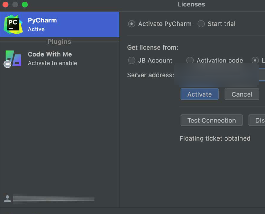复制网址到Jetbrains,选择许可证服务器/License server,粘贴刚刚复制的网址,激活。