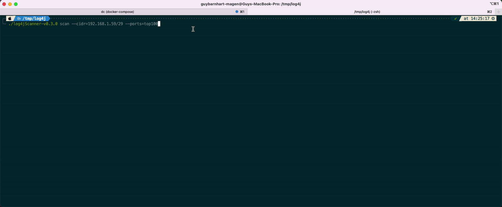 log4jscanner.exe scan --cidr 192.168.7.0/24 --ports=top100