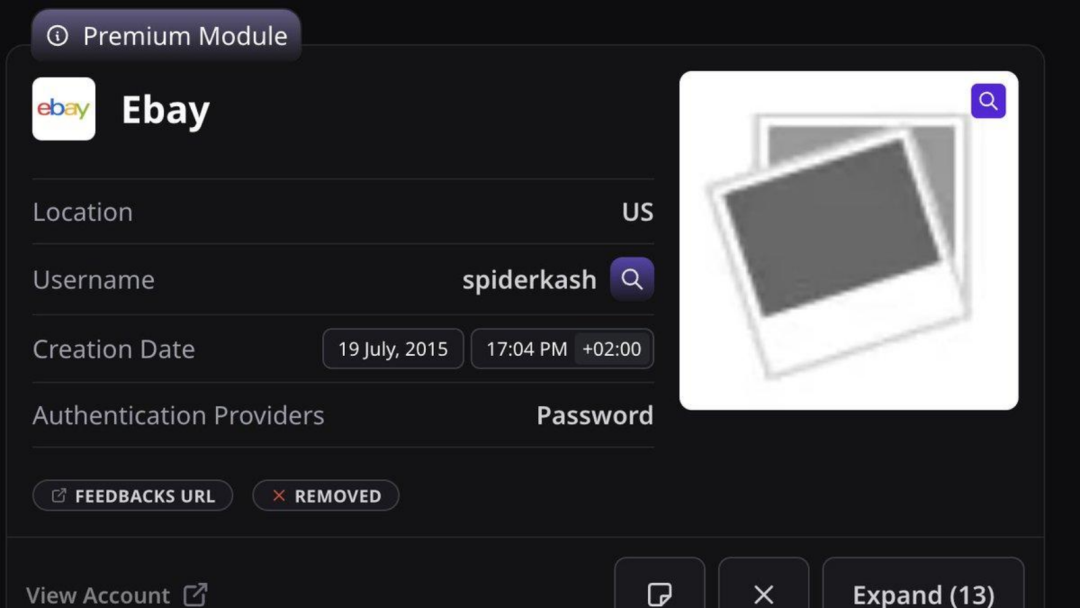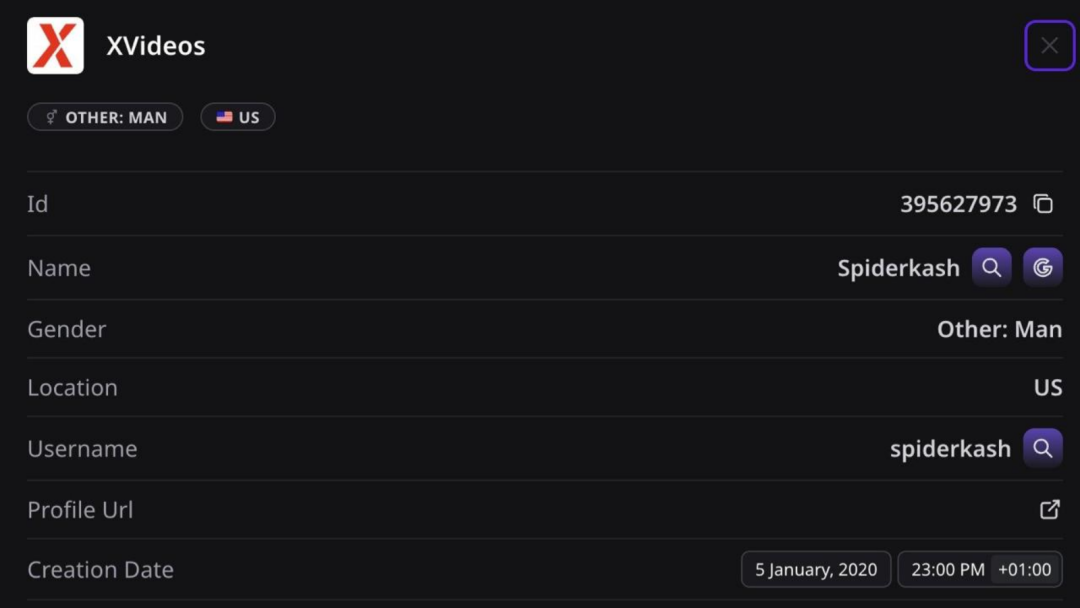 而此次信息挖掘中,一个鲜明的细节成为关键标识 —— 卡什帕特尔对蜘蛛侠似乎有着极高的偏爱,其在多个平台注册使用的昵称均为 SpiderKash,就连被泄露的谷歌邮箱地址,也是以该昵称作为开头,这一统一的账号命名习惯,让开源情报社区的信息排查工作变得异常顺利。从公开的排查截图可见,其在 XVideos 的注册账号 SpiderKash 创建于 2020 年 1 月 5 日,eBay 的同昵称账号更是早在 2015 年 7 月 19 日便已注册,相关信息清晰标注了注册地点、创建时间等关键细节。