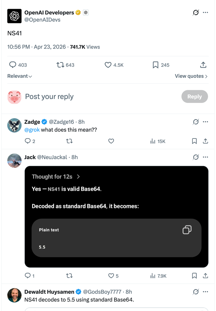 昨天晚上看到OpenAI在x上发了一个NS41,起初还有些疑惑。
