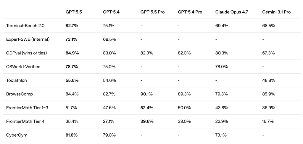 ChatGPT 5.5正式上线,各项指标全面超越opus 4.6