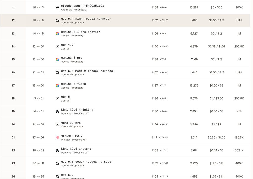 前几天,还有热心网友吐槽,说chatgpt 5.4中arena的coding排名都掉到第12了,猜测5.5一定会有飞跃的提升。