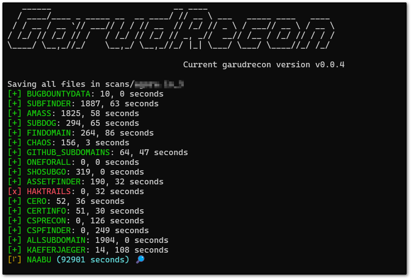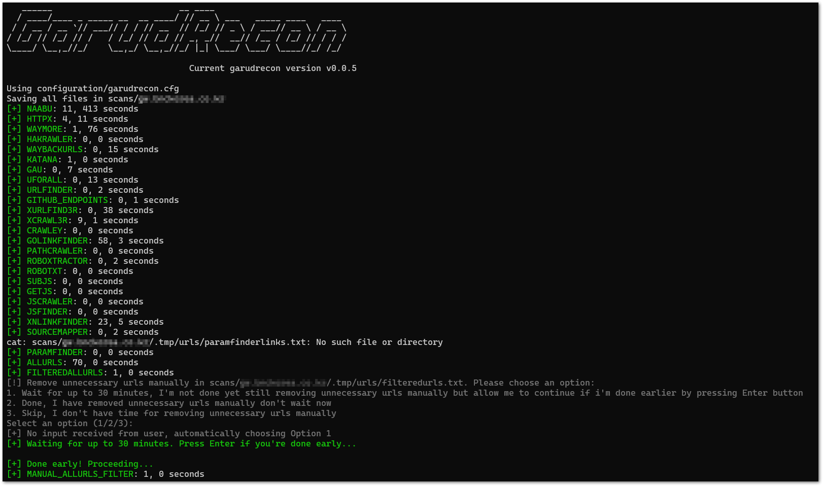 我最初在 2022 年创建了 **GarudRecon**,但在意外泄露了一些 API 密钥后,我将其删除了。尽管如此,有人 fork 了该项目并将其保留在[这里](https://github.com/polling-repo-continua/GarudRecon)。