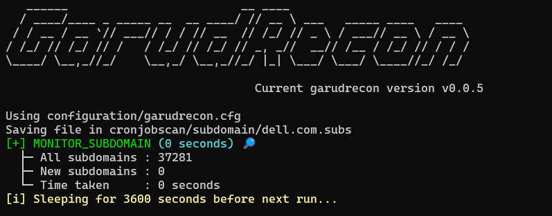 garudrecon cronjobs -d example.com -f MONITOR_SUBDOMAIN
