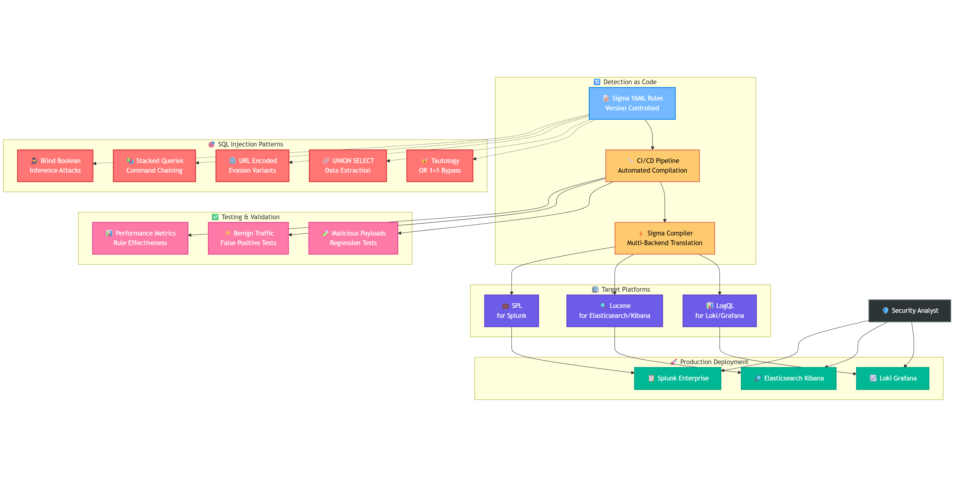 一个结合Kubernetes可观测性工具与Sigma规则,用于学习SQL注入漏洞利用与高级检测工程(Detection as Code)的完整实战靶场。