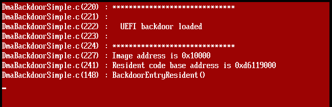 DmaBackdoorBoot.c(632) : Boot backdoor loaded!