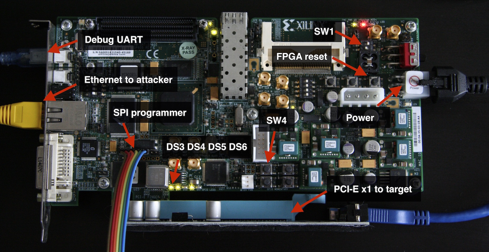 提供的比特流可以模拟存储在 SP605 板载线性闪存中的 PCI-E option ROM。尽管现代平台[缓解](https://docs.microsoft.com/en-us/windows-hardware/manufacture/desktop/uefi-validation-option-rom-validation-guidance)了 option ROM [攻击](https://trmm.net/Thunderstrike),但此功能对于安全审计或原型设计目的仍然有用。