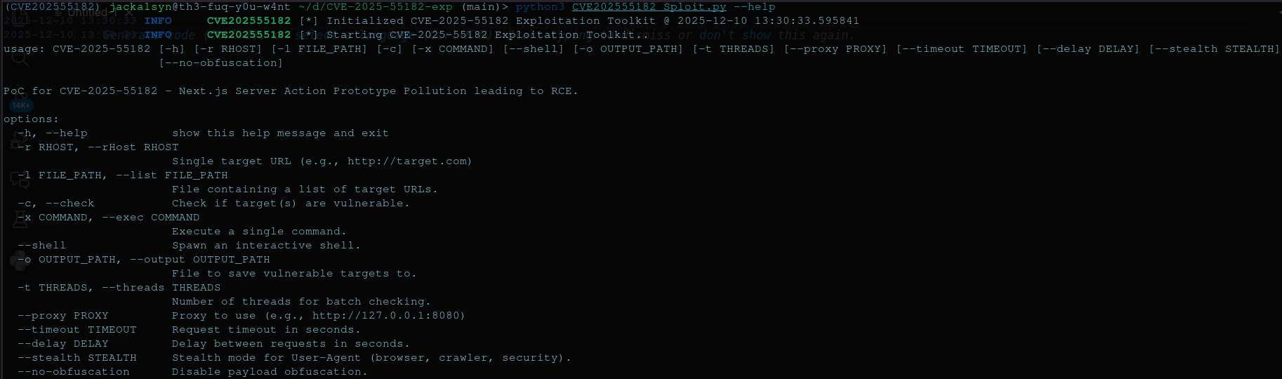 # CVE-2025-55182:React2Shell - Next.js 远程代码执行工具包