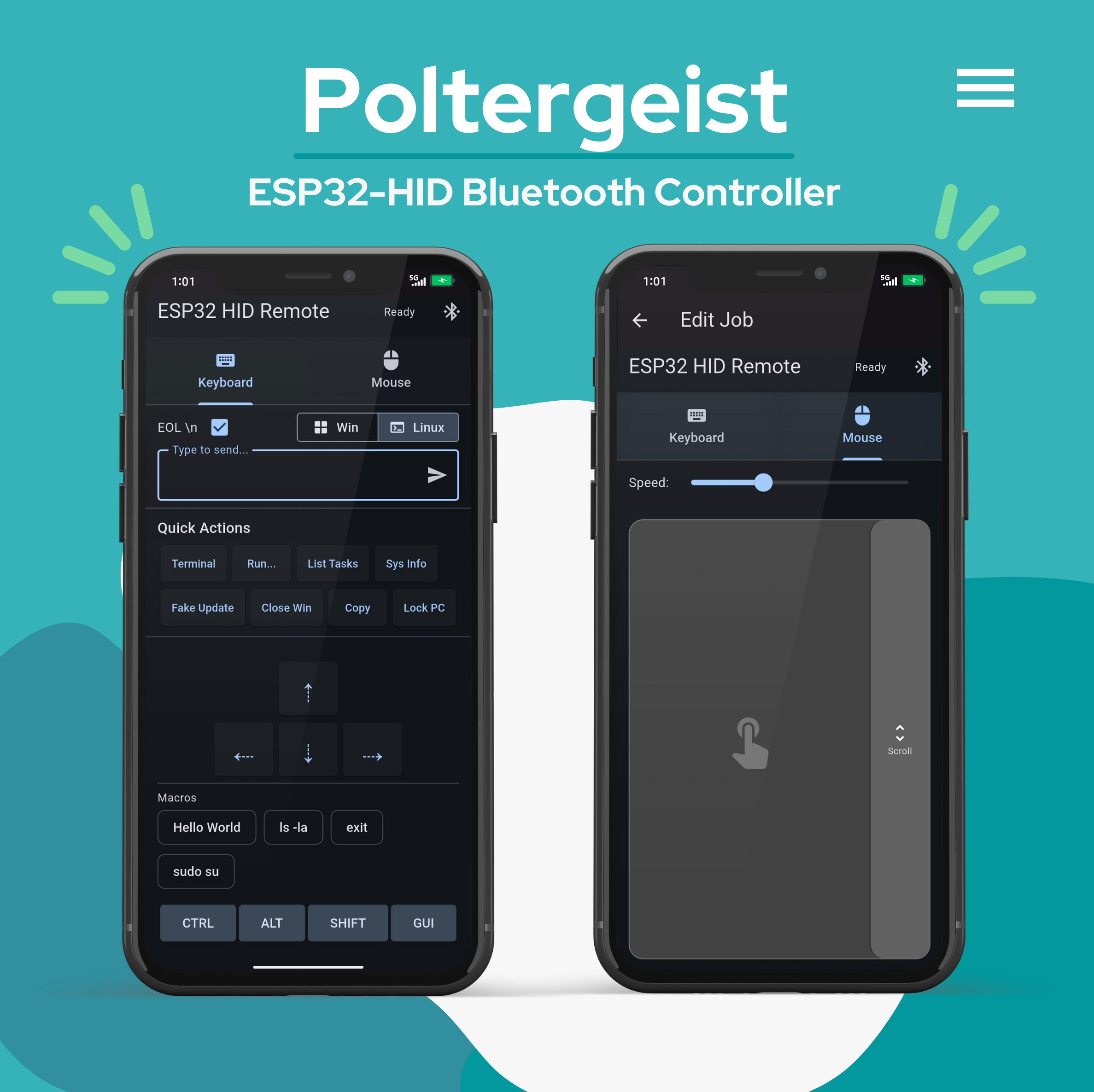 - **通用 Bluetooth HID**:作为标准无线键盘和鼠标控制任何设备 (Windows, Linux)。