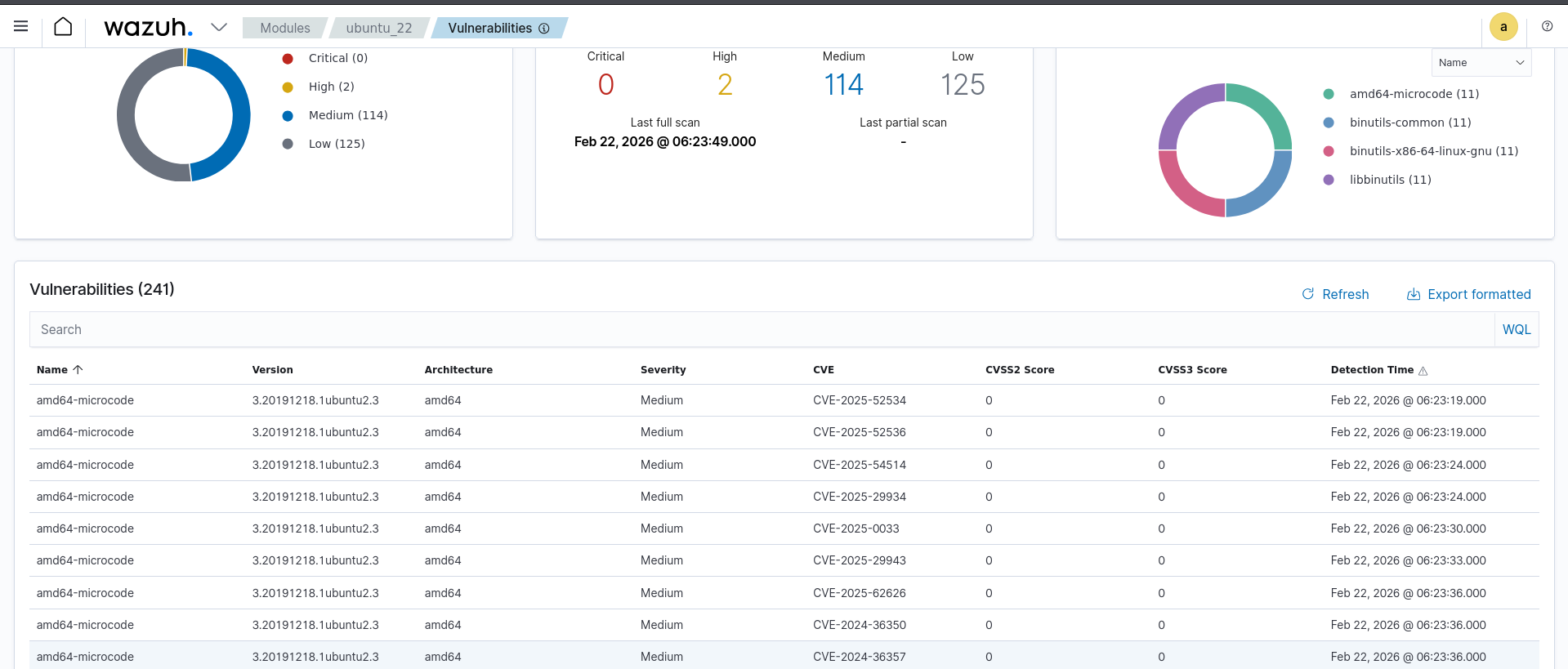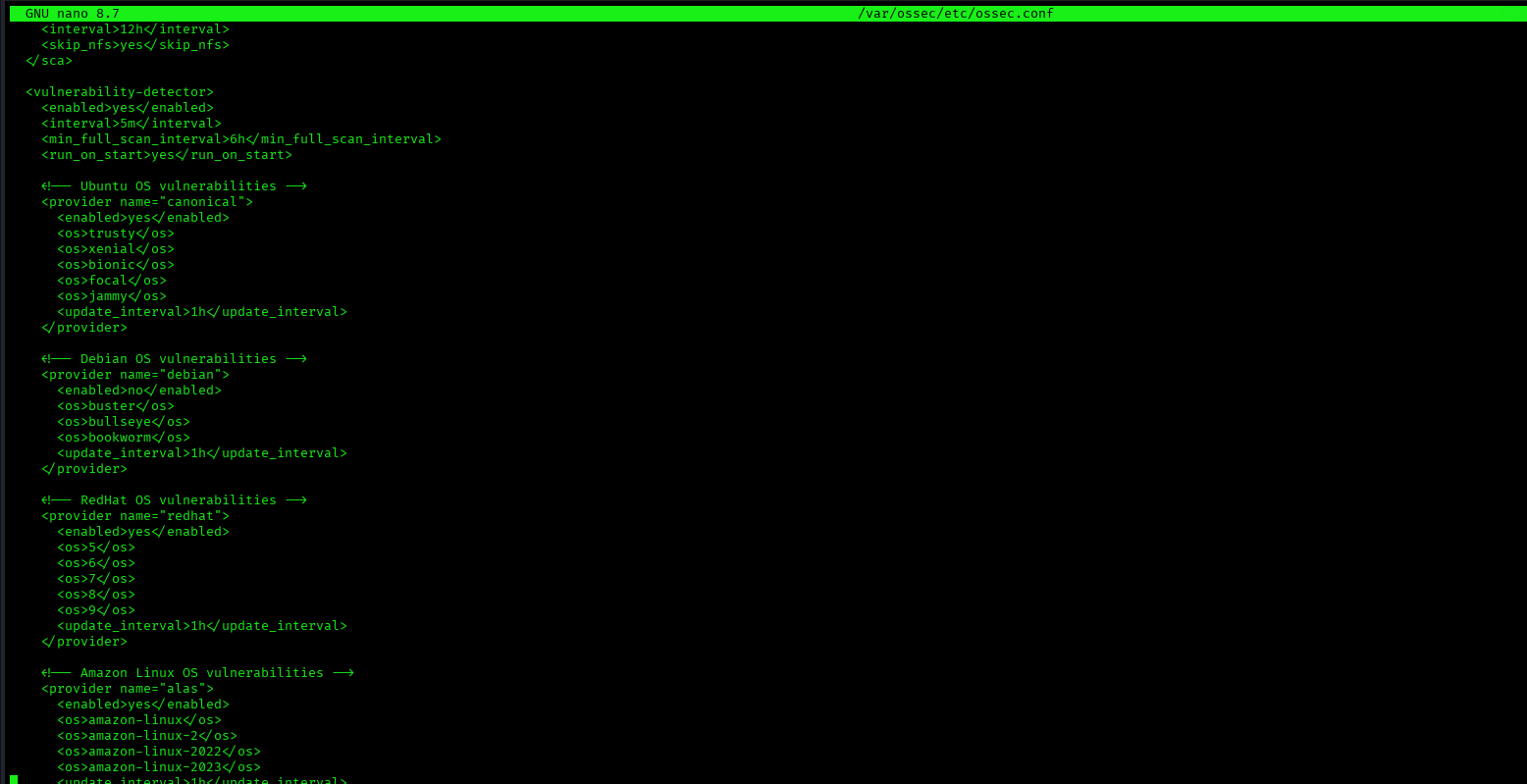 此任务的目标是配置 Wazuh Vulnerability Detector,以识别受监控系统中已安装软件包的已知漏洞。
