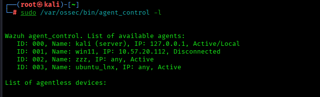 ✔ 所有 Agent 在 Wazuh Dashboard 中显示“Active”状态。\