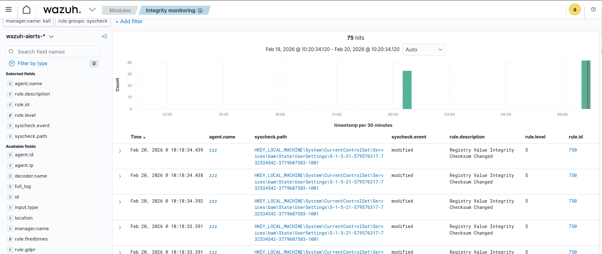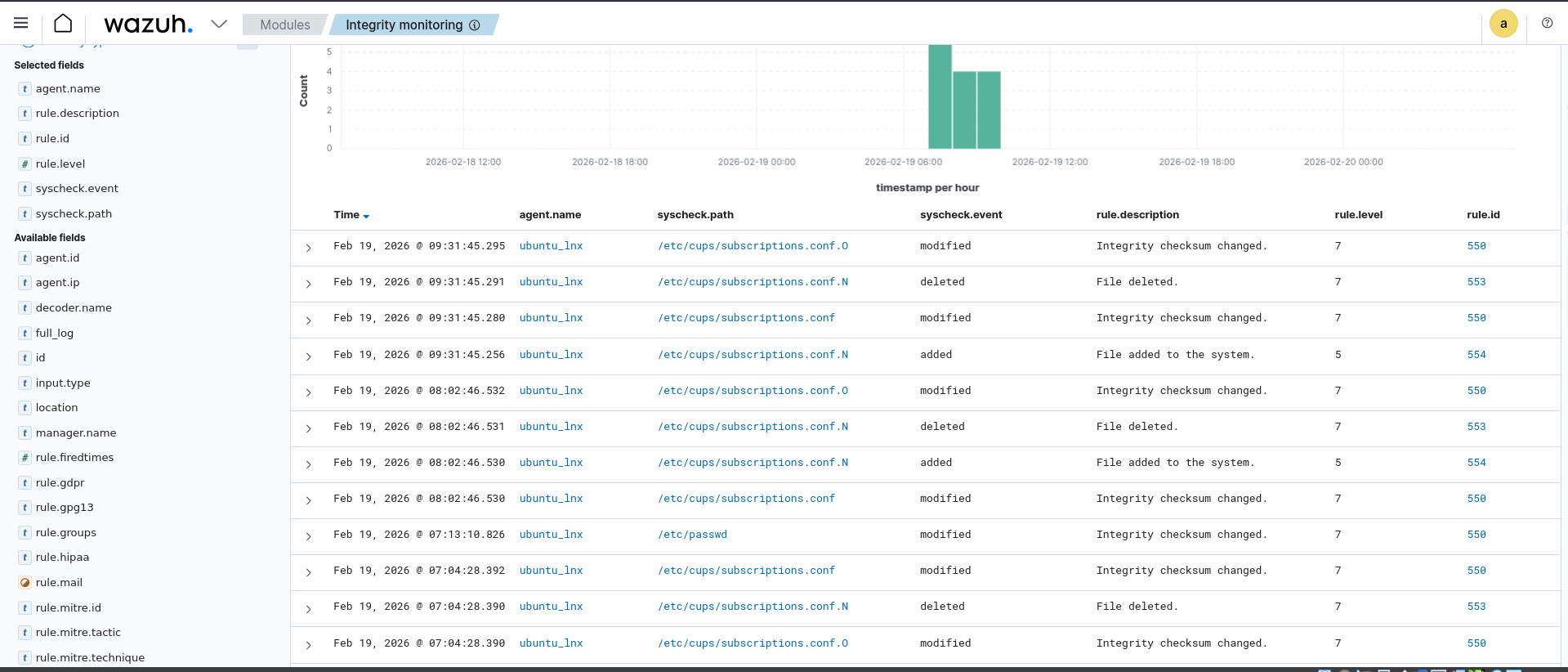 配置了 FIM (syscheck) 以实时监控敏感目录。