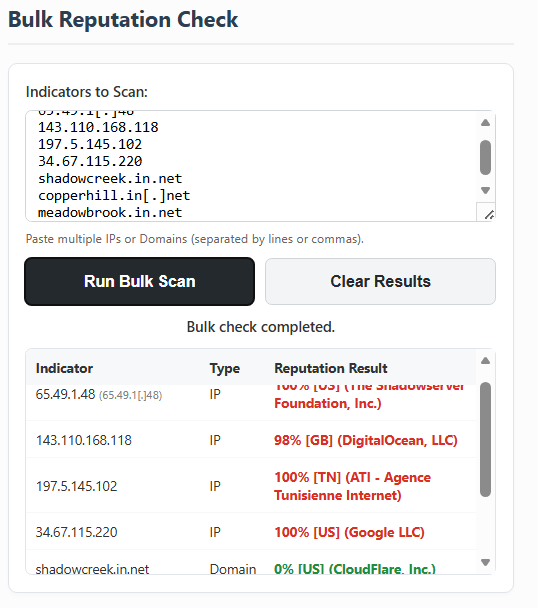 | **批量扫描器** | 粘贴多个 IP/域名以进行批量信誉检查 |