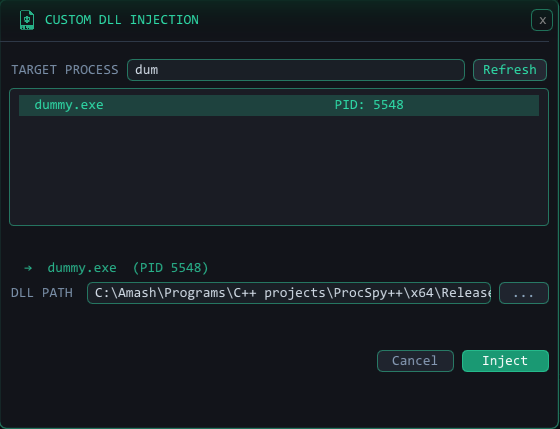 4. Build the ProcSpy++ project → produces ProcSpy++.exe (Usually it chain compiles with ProcSpy++)
