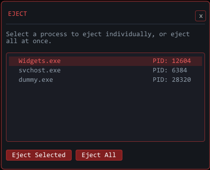 当你完成后,点击红色的 **Eject** 按钮。选择一个进程或一次性弹出所有内容。