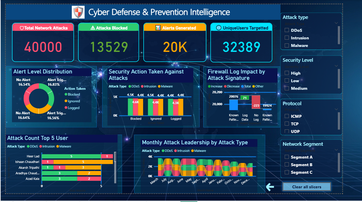 基于Power BI构建的网络安全威胁情报仪表板,将4万条网络攻击记录转化为可视化洞察,支持攻击模式识别、异常行为检测和安全防御效果评估。