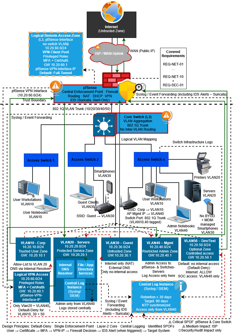 一份以方法论驱动、可追溯为核心的企业网络安全架构研究,演示如何从需求推导到 SOC 就绪的完整设计。