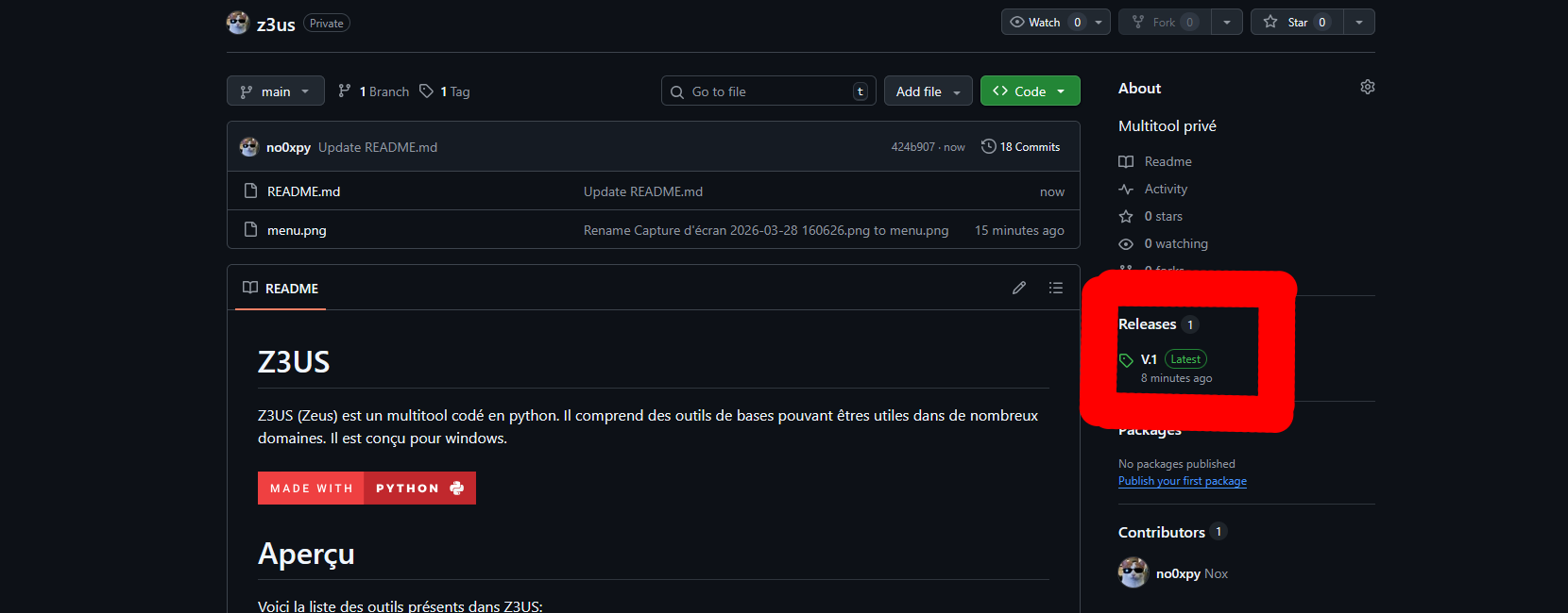 1 - 安装 python: https://www.youtube.com/watch?v=7SSSocyUBnA (请安装可用的最新版本 python) 2 - 返回项目主页,点击 "Releases" 部分中可用的最新版本