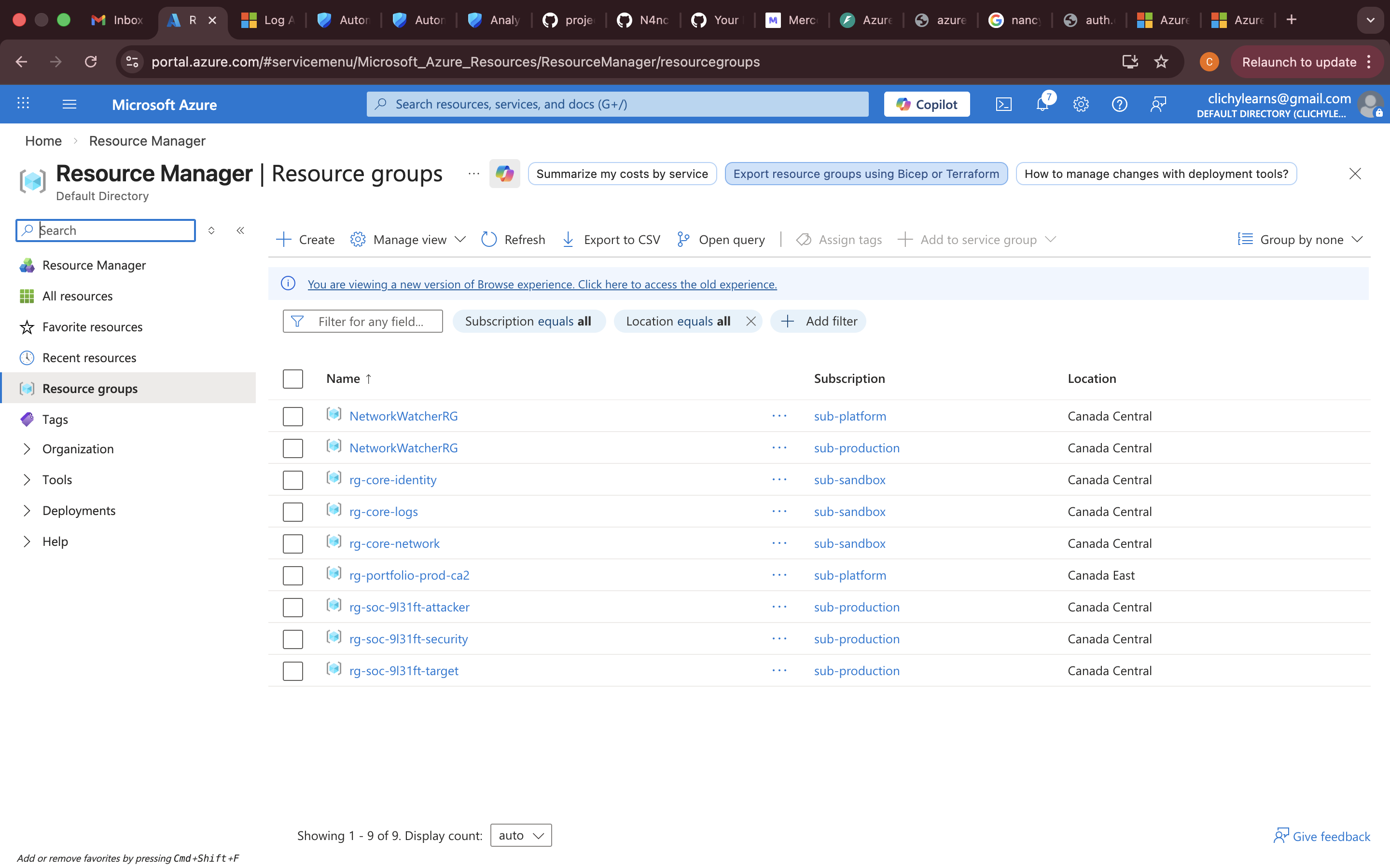 所有三个资源组均已部署并可在 Azure 门户中查看: